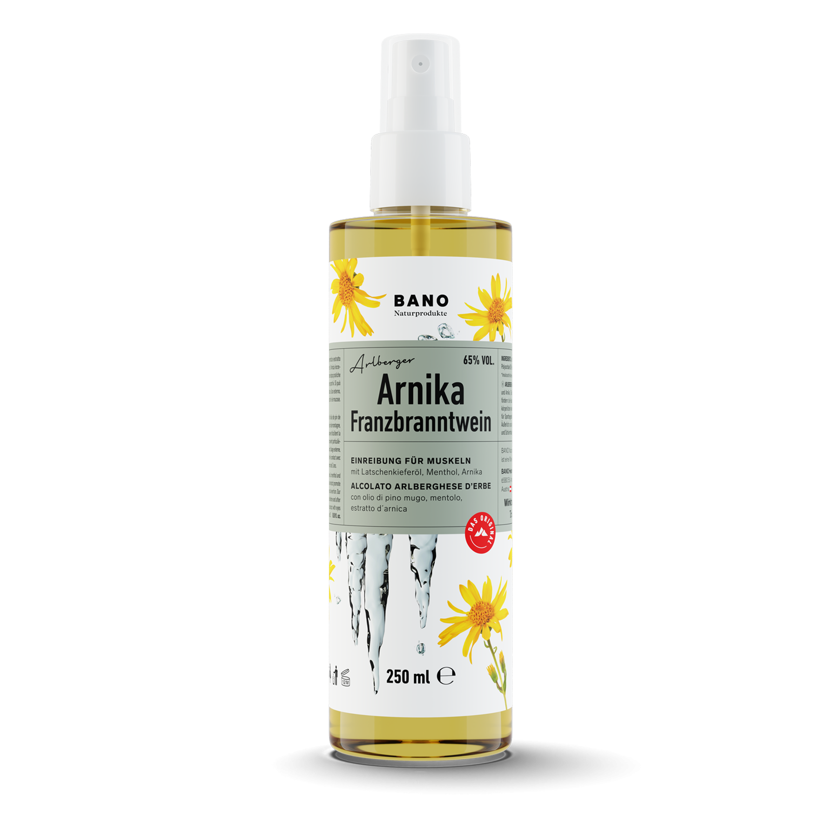 Tiroolse medische arnica wrijfalcohol van Bano is ideaal na lichamelijke inspanning, maar ook voor pijnlijke spieren of gewoon om zware benen af te koelen.